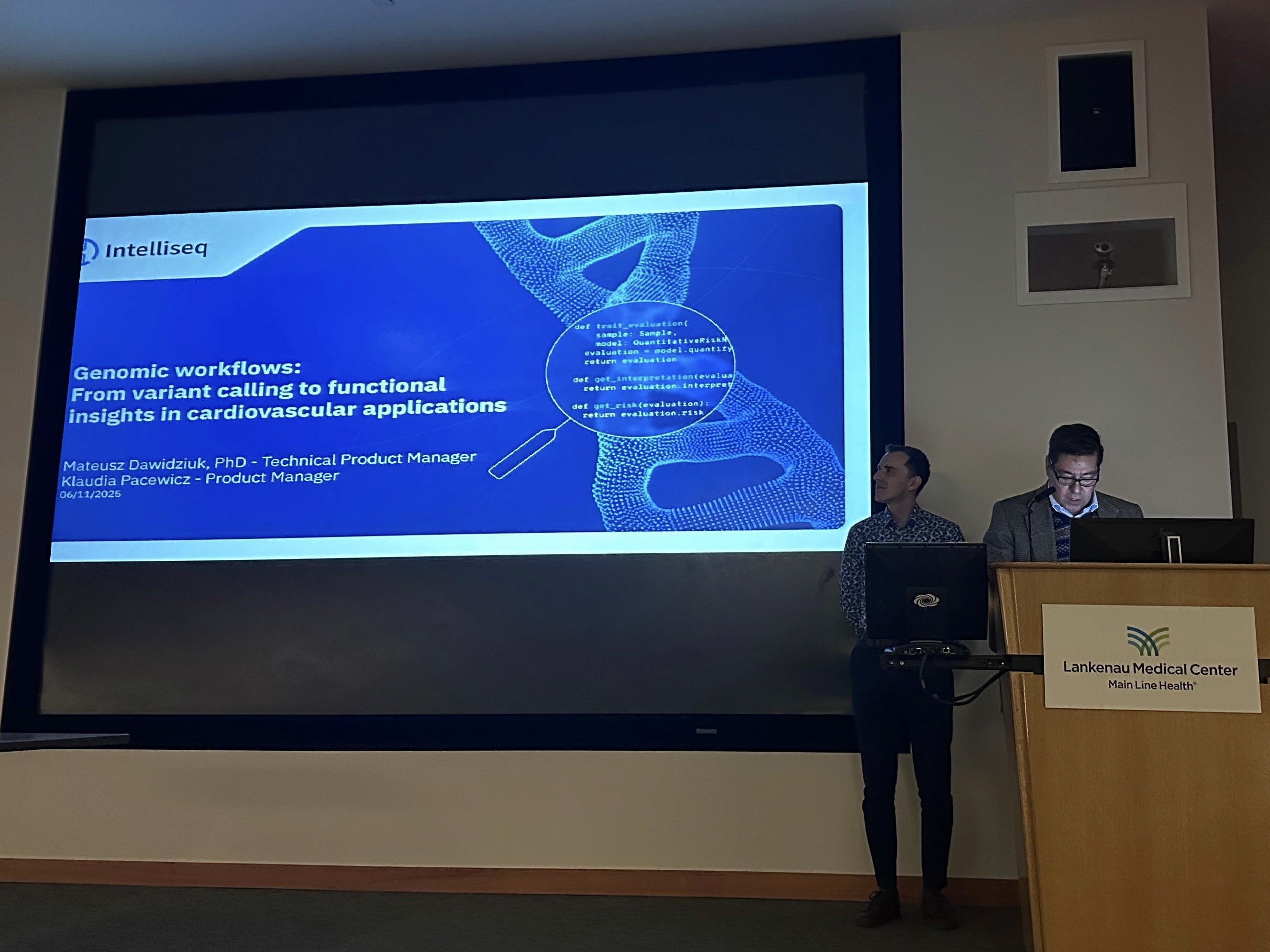 We had the privilege of delivering our talk “Genomic workflows: From variant calling to functional insights in cardiovascular applications” at the Lankenau Institute for Medical Research (LIMR), thanks to the invitation extended by Dr. Héctor Barajas-Martínez. The presentation explored how modern genomic analysis pipelines can support cardiovascular genetics by integrating large-scale DNA variant interpretation with phenotype-driven prioritization and standardized reporting.